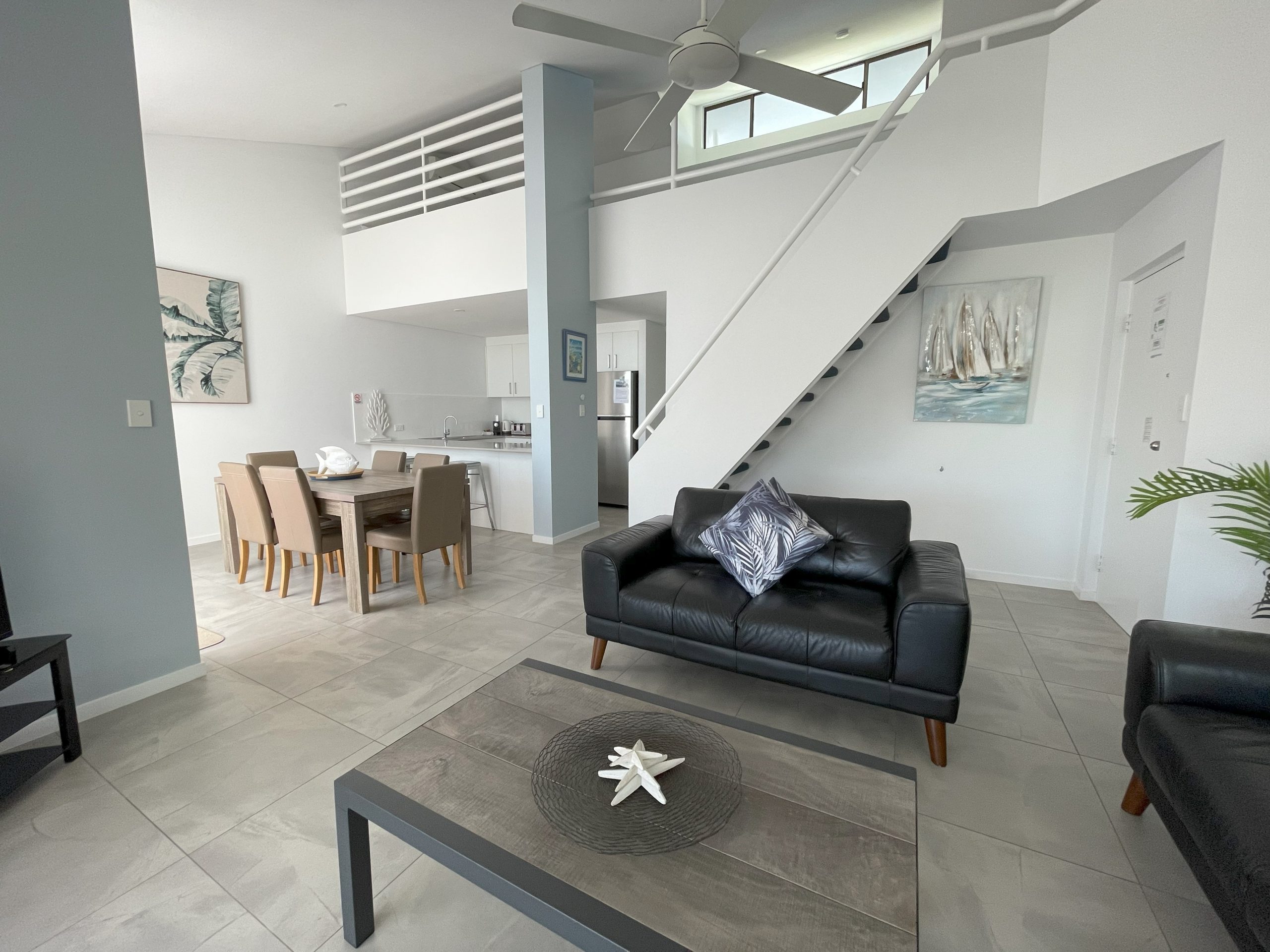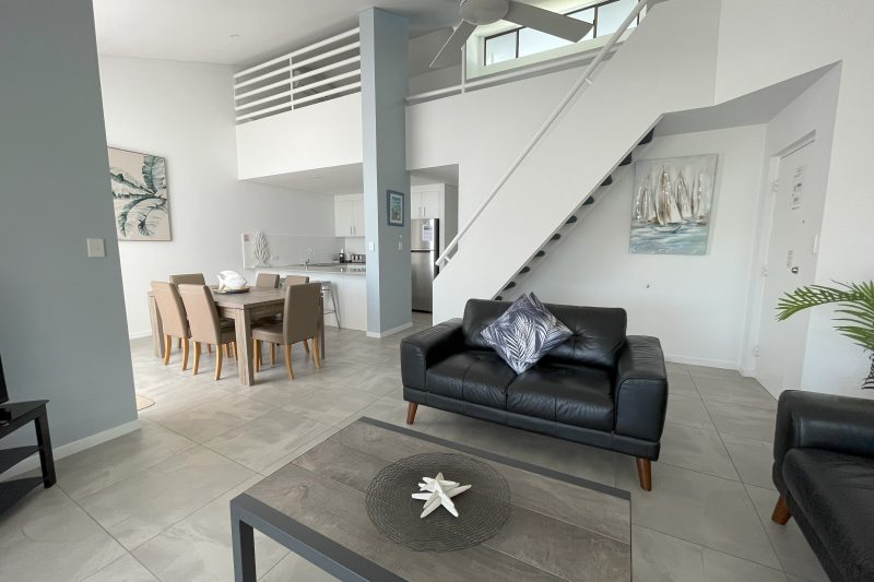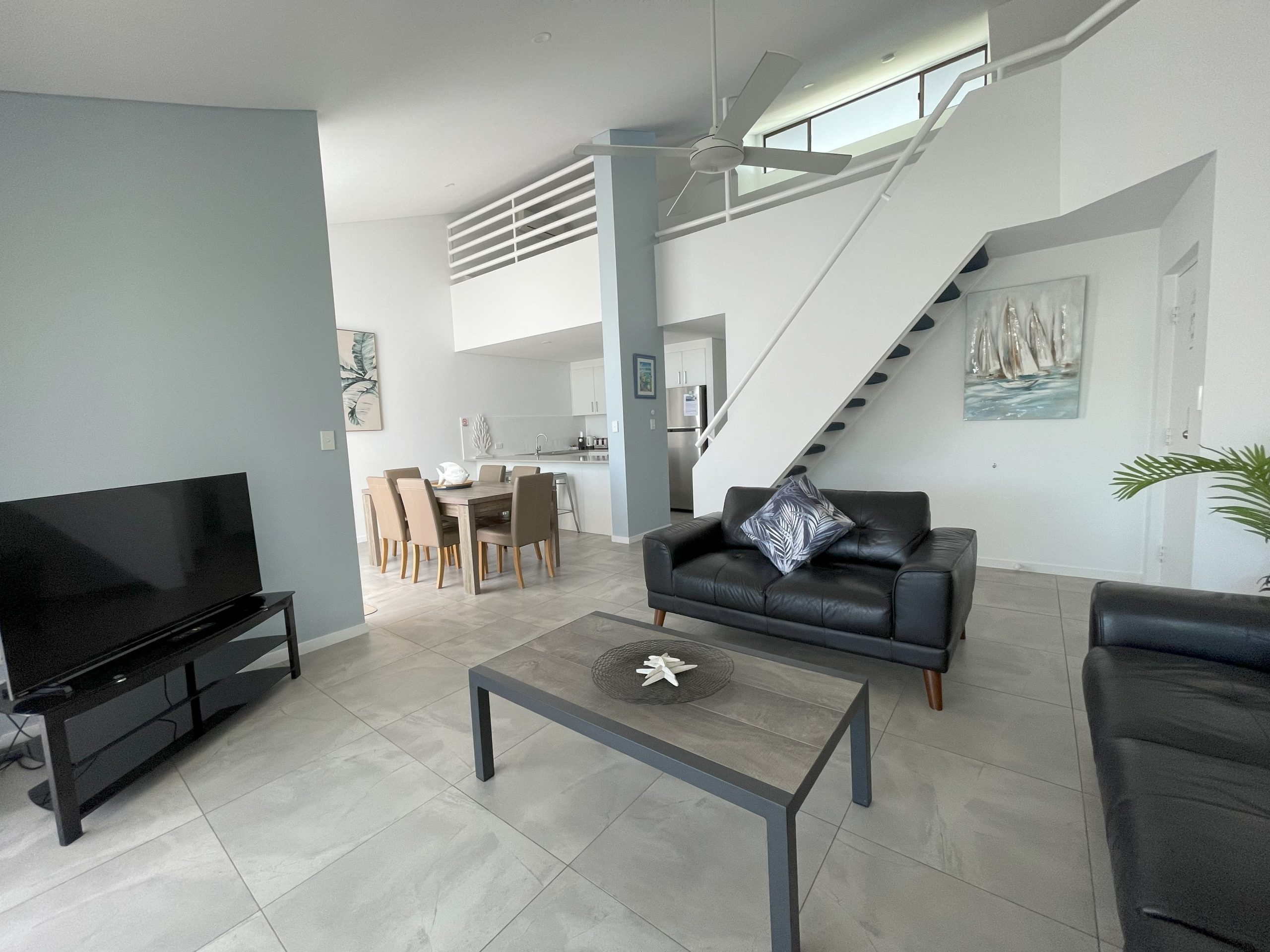 Welcome to your perfect getaway! This charming upper-level 3-bedroom, 2-bathroom apartment comfortably sleeps up to 6 guests. The master bedroom and a second bedroom are located on the main level, while two cozy singles on a mezzanine provide extra space. Enjoy a fully equipped kitchen, air-conditioning, and tasteful décor throughout. With a bus stop right outside, adventure awaits! Explore nearby National Parks, relax at the beach, indulge in boutique shopping, and enjoy local markets. Treat yourself to both casual bites and gourmet dining experiences. This apartment offers the ideal blend of comfort and convenience for your holiday escape!