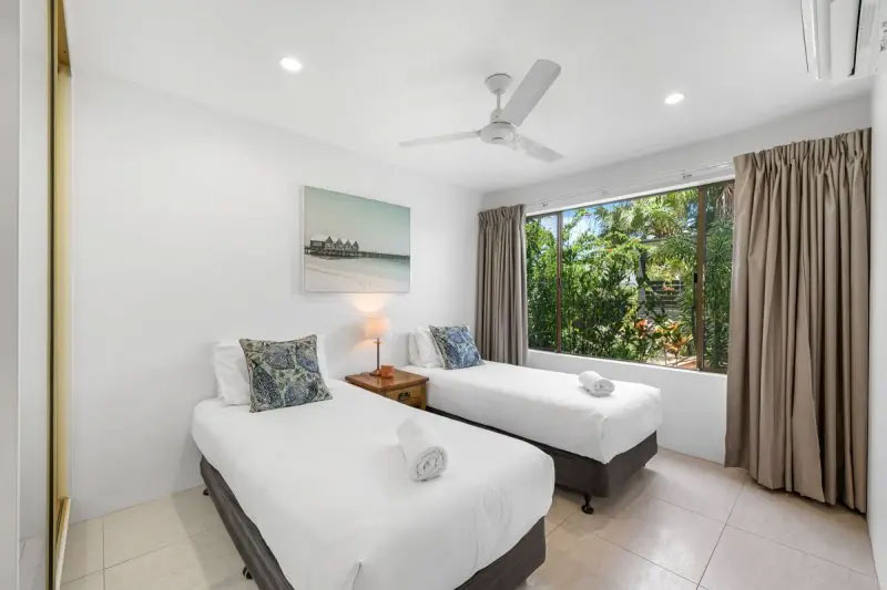 Guests can enjoy resort facilities including a pool and heated spa set amidst tropical gardens. An additional rollaway or fold-out bed is available for children under 80kg, along with port-a-cots for hire. Beach trolleys, cabanas, and other beach gear are also available. Simply select the extras during booking or contact reception directly. On-site reception and after-hours check-in ensure a seamless and stress-free stay.