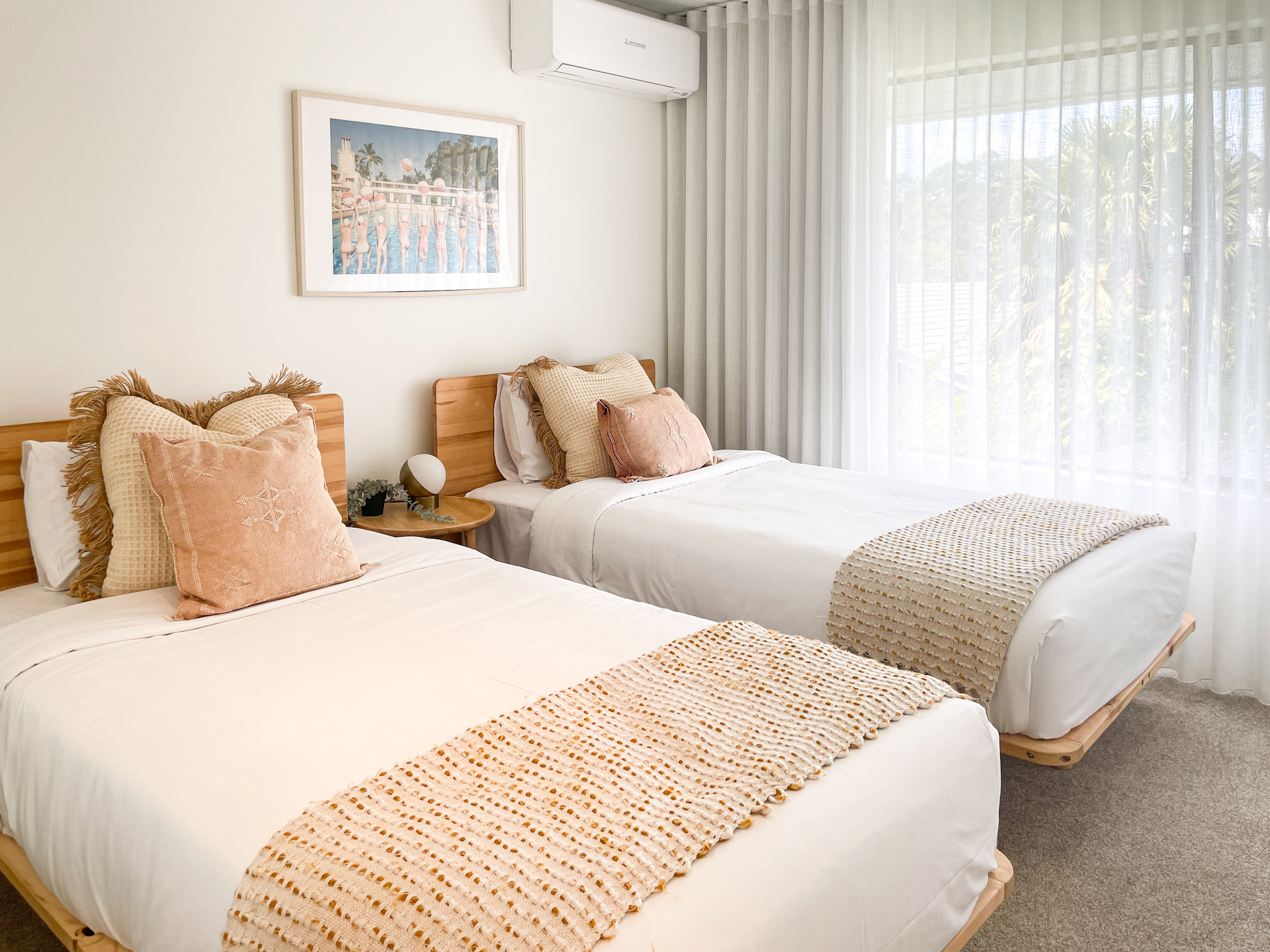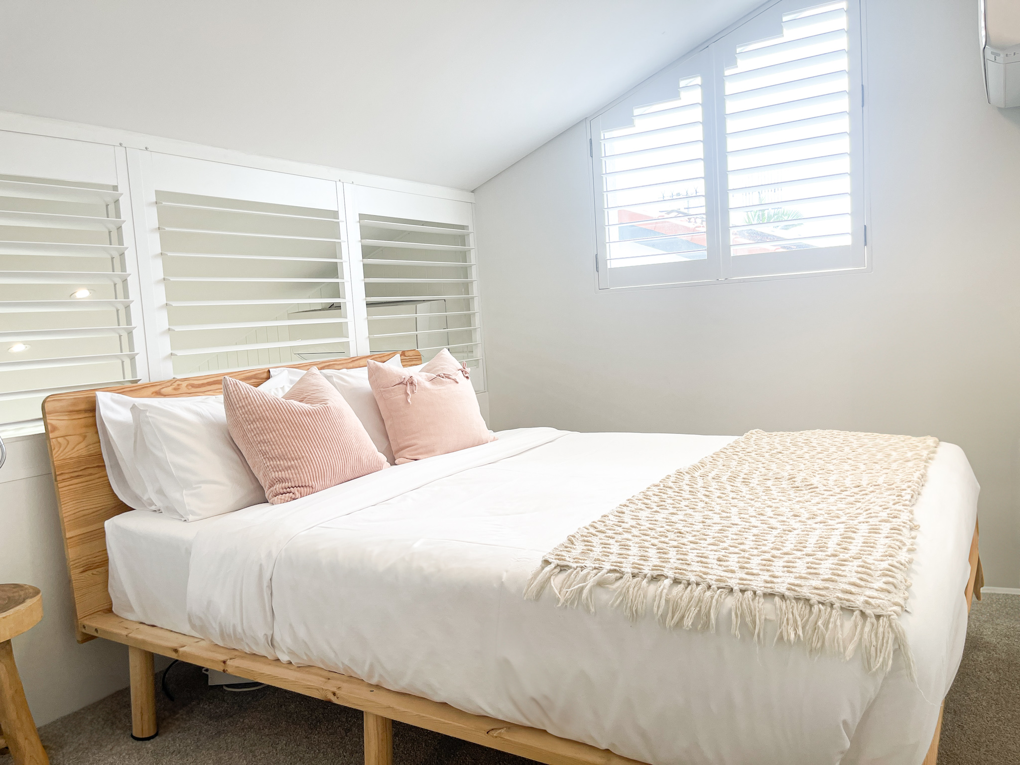 The main bedroom is bright & airy with a luxurious queen bed, TV, walk in robe and beautifully appointed ensuite. The second bedroom has 2 king singles with high quality mattresses. The Retreat upstairs comprises a stylish and comfortable queen bed with enough space to sit and enjoy a good book.