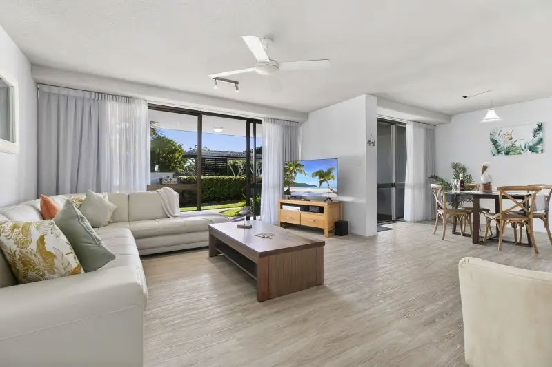 Guests can enjoy resort facilities including a pool and heated spa set amidst tropical gardens. An additional rollaway or fold-out bed is available for children under 80kg, along with port-a-cots for hire. Beach trolleys, cabanas, and other beach gear are also available. Simply select the extras during booking or contact reception directly. On-site reception and after-hours check-in ensure a seamless and stress-free stay.